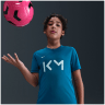Die Nike Dri-Fit Technologie leitet Schweiß vom Körper weg, damit Kinder bei intensiven Einheiten trocken und fokussiert bleiben. Elastische Ärmelabschlüsse und ein weicher Rundhalsausschnitt erhöhen den Tragekomfort, während das dezente Swoosh-Logo und das große KM-Frontmotiv für einen dynamischen Look sorgen.